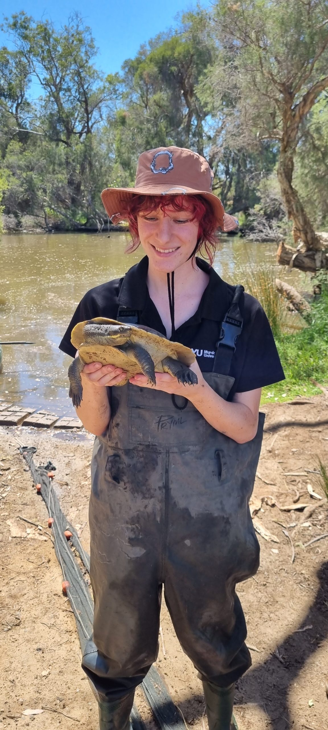 Perth’s freshwater snake-necked turtles (Chelodina oblonga, also; Booyi/Yakkun) are known to be threatened by anthropogenic impacts including urbanisation and accelerated climate change. Through this study, I seek to determine how turtle behaviour and movements are impacted both by aquatic infrastructure and the effects of climate change. To do so, I will tag turtles within the Canning River (also; Djarlgarra Beelier) with GPS data-loggers. The Canning River is a critical habitat for turtles within Perth’s metropolitan area, and this PhD project aims to better understand and thus accommodate these turtle populations. In doing so, we may help to safeguard the species into the future as Perth’s ephemeral freshwater continue to decline.